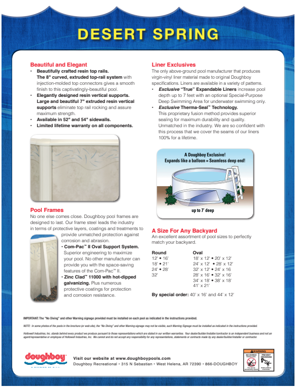 28'X16'X52 OVAL DESERT SPRING - 8" Resin Top Rail - 52" Pool Wall